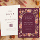 Elegante Burgundy, arca de flor selvagem queimada, laranja queimada, terracota e convite para casamento outono bege com o site de casamento Código QR para RSVP online. Este convite de casamento floral boho chic encantador é uma mistura deslumbrante de calor e charme elegante. Apresentando flores silvestres, pintadas à mão, com cor d'água em torno de um elegante design de arco, o convite apresenta uma rica paleta colorida de burgundy, laranja queimada, número queimado, coral, laranja, marrom, amarelo, verde, terracota, coral, roxo e rosa. Os tons do outono da Terra quente criam uma harmonia perfeita, fazer-a uma escolha ideal para um casamento outono. A elegante escrita e a tipografia moderna trazem um toque de sofisticação, enquanto as aquarelas brancas de flor silvestre ao redor da janela arca adicionam um talento pessoal e boêmico a todos os seus detalhes essenciais de casamento. Desenvolvido pela talentosa artista Catherine Sweetman, este convite único incorpora o espírito de uma celebração acolhedora e íntima no coração do outono. Com modelos fáceis de personalizar, ele oferece uma maneira perfeita de transmitir suas informações de casamento com estilo e arte, incluindo um modelo de código QR para RSVP on-line para seus convidados. O fundo de um rico burgundy e bege acrescentando um calor natural, trazendo as belas flores à vida de uma forma que se sente fresca e eterno.