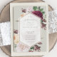 Um convite para casamentos outono romântico, de vintagem, com belos botânicos e uma forma geométrica moderna, com quadro de ouro rosa e monograma de casal.