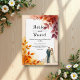 Este elegante convite de casamento floral de aquarela é perfeito para um casamento moderno. A design romântica apresenta uma elegante estrutura floral de aquarela com uma ilustração noiva e noiva e caligrafia preta sobre fundo branco.