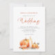 Terracotta Pumpkins Candles Casamento outono. Disponível digitalmente e impresso. O casamento está em um roteiro elegante e personaliza facilmente o resto do texto. Terracotta, abóboras laranja e uma vela brilhando nas cores do outono estão no fundo para uma sensação de outono.