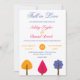 Este elegante convite de casamento outono é perfeito para um casamento moderno no outono. O simples design apresenta árvores coloridas com uma elegante tipografia colorida sobre um fundo branco