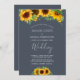 Convite Rustic Royal Blue Sunflower - pop de girassóis amarelos-negros contra fundo azul-real neste convite para casamentos outono rústico. Ideal para casamentos de celeiro, cerimônias de outono, ou casais que amam um toque floral ousado com uma vibração country-chic.