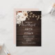 Apresentando nosso encantador convite para casamento russo, a escolha perfeita para sua celebração de casamento outono. O design apresenta um cenário de madeira rústica belamente ilustrado, evocando o charme e o calor de um cenário de outono. No topo da carta, é apresentada graciosamente uma impressionante disposição aquosa das flores em cores neutras, iluminada pelo brilho suave das luzes de cordas, acrescentando um toque de magia e romance. O convite combina elegantemente o texto em uma fonte serif clássica com um script moderno, destacando o título "O Casamento de" em uma fonte de script cativante. Este convite é uma seleção ideal para casais que buscam captar a essência de um casamento outono, fundindo a agitação rústica com a sofisticação moderna. Faça a palco do seu dia especial com um convite que não só anuncia o seu evento, como também reflete a beleza e o espírito único da sua história de amor.