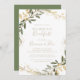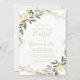 Este convite de café da manhã de casamento outono verde de ouro geométrico é perfeito para um evento moderno. A design apresenta uma bela estrutura geométrica dourada com folhas verdes elegantes.
