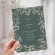 Design de casamento botânico com o hálito do bebê sobre fundo verde de pavão.