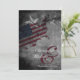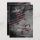 Este design de convite para casamento patriótico apresenta uma bandeira americana moldada com estrelas decorativas e uma cinza e fundo negro de grunge. Este Convite é perfeito para Casamentos Patrióticos, Militares e 4 de julho. ^