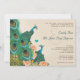 Peach Coral Apricot e Terras Verdes Tons Elegantes Vintage Peacock Coral Peachy com Luxo Russo e Penas Peacock. #GrandMillennium #CottageChic #Chinoiserie Roaring 20s, Art DECO, Art Nouveau Farmhouse Rustic Peacock veem mais produtos de aves antigos Convites para Casamento de Peacock