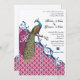 Lapis Blue e Berry Berry Raspberry Pink Yflecha Elegante Damask Peacock Convite Noivado, Aniversário, Casamento Foto de Canvas Foto
