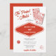 Uma mão única desenhou o design de casamento "o jogo perfeito" do casino de Las Vegas. Um destino moderno em Las Vegas, tema do casamento de Nevada com cartas de jogar, jogos de casino com ilustrações temáticas. Um design de convite para casamento de Las Vegas vermelho e branco ideal para casamentos temáticos com casamentos de casino. Também estão disponíveis itens de papelaria de casamento e outros formatos de convite de casamento.