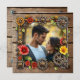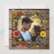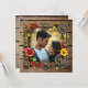O convite de casamento do Steampunk. Flores vermelhas e amarelas a vapor, engrenagens metálicas e fundo de madeiras curtidas. Carregue a sua imagem favorita na área personalizar e edite o texto no verso para adicionar as suas próprias informações de casamento.