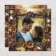 O convite de casamento do Steampunk. Artes de metal de ouro, flores e um fundo de ouro. Carregue a sua imagem favorita na área personalizar e edite o texto no verso para adicionar as suas próprias informações de casamento.