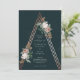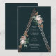 Um convite de casamento romântico com belos elementos botânicos vintage no topo de uma pirâmide estrutural em ouro rosa.