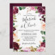 O convite para o casamento floral, elegante e moderno, de meio-verão, apresenta um buquê de rosas de aquarela e de peônias em tons de rosa-pincel, púrpura, ameixa, vinho tinto com folhas botânicas verdes e eucalipto. Por favor, encontre mais designs e variações na minha loja de "blisswedingpaperie". E fique à vontade para me contactar para mais personalizações ou itens correspondentes.