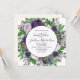 Linda lavanda e plum roxo floral e verde em um convite de casamento branco botânico. Entre em contato conosco para obter ajuda sobre a personalização ou produtos correspondentes. Os nomes da noiva e do noivo estão em uma letra elegante.