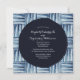 Seus convidados ficarão agradavelmente surpresos em receber seu convite de casamento listrado com listras de indigo azul moderno pelo correio. Padrão dourado de listras azuis de indigo com um centro azul. Perfeito para qualquer um dos casais modernos de hoje.