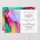 Convite de casamento com um desenho abstrato artístico rico. Pintura aquosa com as cores misturando e misturando criando um padrão fluido agradável. Um quadro branco com uma borda falsa de folha de ouro colocada sobre cima com seu dentro de texto personalizado.