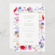Linda trabalho de arte floral de aquarela ideal para o casamento de primavera ou verão. Um design capricho, mas elegante, com um roteiro de tipografia moderno, com fácil personalização de modelos. As pinturas de flores silvestres incluem papoilas vermelhas vibrantes, flores de milho, flores de cosmos, nãos de mim e botões de billy em roxo, rosa, verde-sábio, verde, cor de rosa e azul. Trabalho de arte original de botânica pela artista Catherine Sweetman