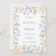 Este convite floral bonito para flores silvestres baseia-se numa pintura a aquarela de flores selvagens num jardim inglês. As delicadas cores pastel vão se encaixar com muitos temas de casamento, melhorando seu dia, mas não assumindo. Wild rosa, não me esqueça, lavanda e sábio estão delicadamente arrumados em um quadro de fronteira em torno do texto personalizável. O inverso é uma sutil sombra cor-de-rosa pincelada - que pode ser alterada para o que você quiser.