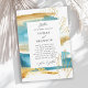 Deliciosamente moderno e artístico, este convite único para o casamento tem lavagens em azul com areia ouro e traços pintados da vida marinha espalhados ao redor do quadro. Faz uma escolha encantadora para a praia ou os casamentos à beira-mar, casamentos de destino ou casamentos com um tema náutico. O texto escrito manualmente moderno sobe com uma fonte serif elegante para transmitir suas informações com estilo e charme. Personalize o modelo de texto com os detalhes do casamento.