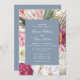 O Elegante Watercolor Boho Floral Country Wedding Invices apresenta um fundo de flor na moda com cor de água, com eucalipto, frondes de palma, rosas, peões e samambaias em tons mutados de ameixa, burgundy, verde, pêssego e rosa. Personalizado editando o texto nas caixas de texto fornecidas. Elaborado por ©Evco Studio www.zazzle.com/store/evcostudio
