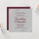 Este belo convite para o casamento apresenta um simples, mas elegante design de texto burgundy sobre um fundo de cinza com filigre floral de folha de prata ou fritas nos cantos. Bem-vindos seus convidados para compartilhar seu dia especial de celebração de casamento com esses convites lindos. Um casamento é uma celebração única de amor, amigos e família. Torne seus núpcias realmente memoráveis com estes convites bonito e na moda. Este convite é totalmente personalizável, para que você possa alterar o texto de acordo com sua situação e suas necessidades.