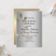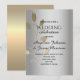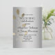 Convite de casamento simples, moderno, elegante, em cinza e prata metálico com floreado chic.