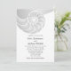 Um design elegante moderno para casamentos de praia ou destino, este convite apresenta uma casca de náuseas prateada na frente e no verso. Personalize com seus detalhes de casamento substituindo o texto de amostra mostrado na modelo de design. Você pode mudar o texto para se adequar ao seu gosto pessoal e estilo.