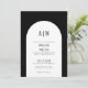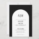 Convite de Casamento Preto e Branco com Monograma de Arco Moderno Simples. Um convite de casamento minimalista com um arco muito simples e fontes elegantes e simples. Um monograma no topo e no verso para as iniciais do casal. Você pode personalizar este convite para qualquer cor que desejar. Há um segundo 'arco' nele se você quiser adicionar uma linha de destaque ao arco. Basta usar os elementos 'oval' e 'quadrado' na parte inferior da lista para alterar essas cores.
