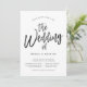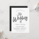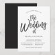 Um convite de casamento exclusivo com letras em estilo de dança seguido pelos detalhes do seu dia de casamento em preto e branco.