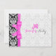Damascos florais elegantes e monogramas, de cor branca, com design de damascos florais pretos ornamentado, fita cor-de-rosa, modelo de convite de casamento personalizável