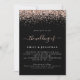 Casamento Preto com Código QR do Código Glitter Dourado Rosa Glam. Uma borda de rosa dourado falso brilho está em cada lado, e The Wedding Of em um guião estilo manuscrito em rosa empoeirado com fundo preto. Personalize facilmente o texto para seus próprios detalhes. Substitua o código QR de amostra no verso com sua própria orientação para a página de resposta do site do casamento. fazer conveniente que seus convidados revistem o rsvp e vejam mais detalhes sem a necessidade de RSVP separado e cartões de detalhes. Você pode criar códigos QR gratuitamente on-line. Basta pesquisar "Criador de código QR" e muitas opções surgem para criar gratuitamente.