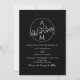 Convite de casamento negro elegante, moderno, contemporâneo, minimalista e simples com monograma único e código QR no verso.
