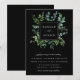Quadro botânico moderno, convite de casamento. Verde impermeável de cor d'água em tons de verde e azul. A placa apresenta cor de fundo preto sólido.