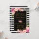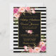Cartão de Convite para Casamento com Strike Dourado e Preto, cor-de-rosa floral, e cor-de-rosa