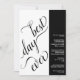 Este convite de casamento exclusivo apresenta um moderno design preto e branco de 2 painéis com caligrafia elegante no painel branco esquerdo, soletrando "melhor dia de sempre". O painel direito é preto com texto branco e apresenta todas as informações importantes. Design tipográfico clássico.