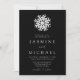 Celebre seu dia especial com nosso Simples Convite de Casamento Negro e Branco. Apresentando um floco de neve branco e ousado contra fundo preto, este elegante design permite que casais personalizem com seus nomes e detalhes de casamento em letras nítidas de serifa branca e sotaques caligráficos. Ideal para o inverno moderno, feriados e casamentos de Natal, este convite dá o tom perfeito para uma celebração festiva e memorável.