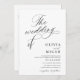 Convites casamento preto e branco com script de caligrafia