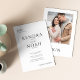 Tendência elegante noiva e noiva mínima e nomes de noivo script de tipografia na moda convite personalizado para fotos de casamento em preto e branco simples com noiva de monograma tipografia e iniciais de nomes de noivos. +++++++++++++++++++++ O convite é adequado para primavera, verão, outono ou cerimônias e recepções de casamento clássicas e neutras no inverno.