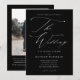 Um Convite de Casamento Preto e Branco Elegante e Simples com letra moderna e texto clássico. O verso tem uma foto e código QR para RSVP. Clique no botão de edição para personalizar este design.
