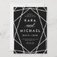 Estes convites elegantes, modernos do casamento têm um fundo preto profundo e um design geométrico moderno branco. Todo seu texto está no branco. Um ultra à moda procura seu casamento!