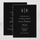 Este convite de casamento preto e branco chic e minimalista pode ser personalizado com suas iniciais de monograma e informações do dia do casamento. Com todas as suas informações especiais do dia do casamento no verso, incluindo seu RSVP, acomodação e detalhes adicionais. Projetado por Thisisnotme©
