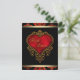Convite de casamento de coração de cetim vermelho rico, vermelho, preto e dourado.