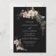 Convites Casamento Preto Floral de Flor Rosa Botânico
