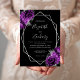 Este elegante convite de casamento moderno apresenta um quadro geométrico de prata decorado com ameixa e buquês florais de prata num fundo preto. O texto personalizável combina a escrita manual imétrica de cinzas prateadas, a placa de cobre e as fontes itálicas. O reverso é preto sólido.