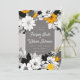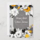 Elevem seu dia de casamento com este moderno e elegante convite de casamento com flores monocromáticas de preto clássico, branco, cinzas e pop sutis de amarelo vibrante de mostarda. Fonte moderna e contemporânea.