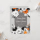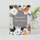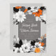 Elevem seu dia de casamento com este moderno e elegante convite de casamento com flores monocromáticas em preto clássico, branco, cinzas e pop sutis de laranja vibrante. Fonte moderna e contemporânea.