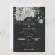 Convite de casamento único com flores brancas românticas e folhas verdes em fundo preto. PARA MAIS PRODUTOS CORRESPONDENTES, clique na coleção acima ou entre em contato comigo.