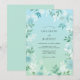 Este design apresenta um gradiente aquarelado sereno de verde espuma do mar e azul céu. Flores brancas delicadas e folhagens criam uma atmosfera suave e etérea perfeita para um evento de primavera fresco. O estilo pictórico destaca folhagens elegantes e sutils acentos florais para uma estética tranquila.