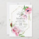 CONVITE DE CASAMENTO | Papoilas de cor-de-água cor-de-rosa com verde adornam uma estrutura geométrica multifacetada dourada. O reverso é uma cor complementar coordenada. Personalizar texto, estilo de fonte, cor e tamanho. Criamos que esta modelo é para facilitar a personalização com suas próprias informações. Esta é parte de um Conjunto completo de artigos para casamento com casamento, chá de fraldas e outros artigos de papelaria para eventos semelhantes desenhados pela WhimsicalArtwork™.