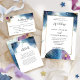 Convite de Casamento Elegante e impressionante com a capacidade de alterar todas as seções de texto conforme necessário. Design requintado com um belo globo celeste, e delicadas manchas de cor lacre, roxa, fuchsia e azul com elementos de ouro, fluindo atrás de seus detalhes criando uma atmosfera celeste. Voltar com manchas de aquarela com cena celeste e detalhe floral de canto inferior com as iniciais do casal. Capacidade de selecionar "Editar usando a Ferramenta de Design" e fazer alterações no estilo, tamanho e posicionamento da fonte do texto. Parte da nossa Coleção "Jardim Místico Celestial" com uma variedade de produtos de coordenação disponíveis.